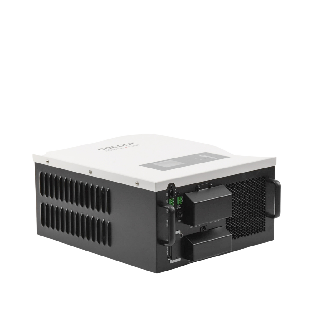 Inversor / Cargador para sistemas tipo isla de 48Vcc/120VCA de 2500W onda sinusoidal pura con controlador MPPT. Administre una fuente fotovoltaica, la red eléctrica y recargue su banco de baterías y su consumo sin problemas.